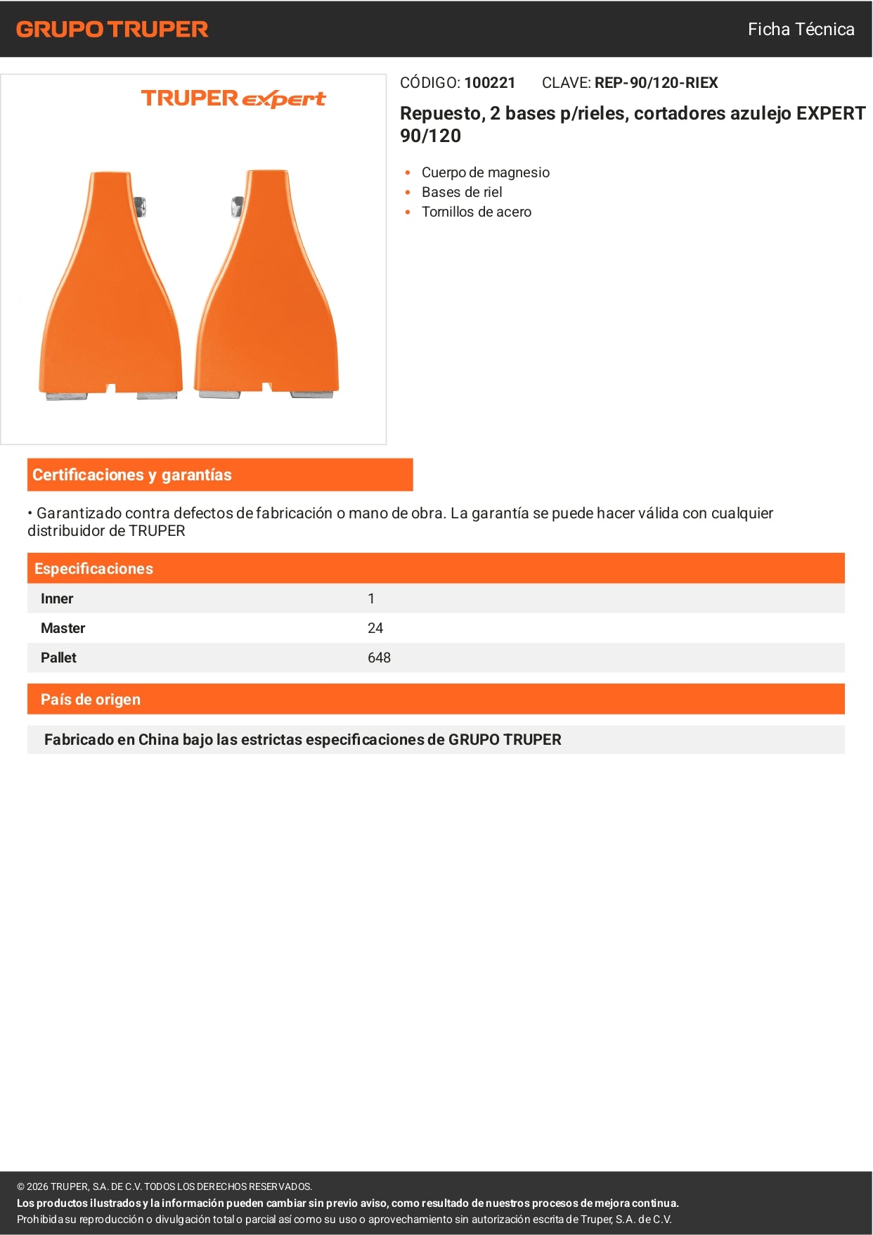 Mantén tu cortador en condiciones óptimas y asegura el posicionamiento correcto en cada trabajo. Marca TRUPER®, respaldo de calidad comprobada.