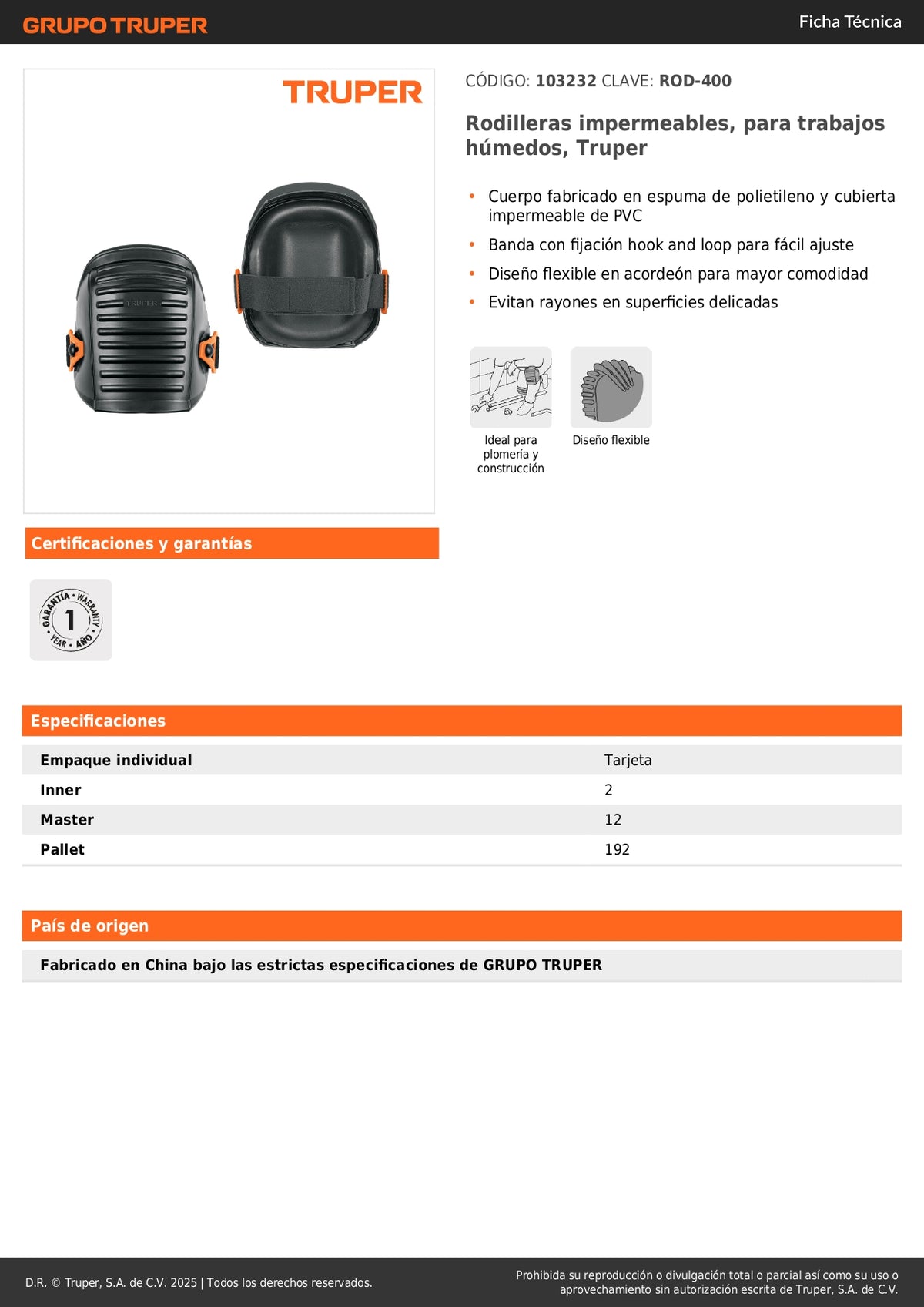 Rodilleras Impermeables Truper ROD-400 - Protección Profesional para Trabajos Húmedos y Superficies Delicadas