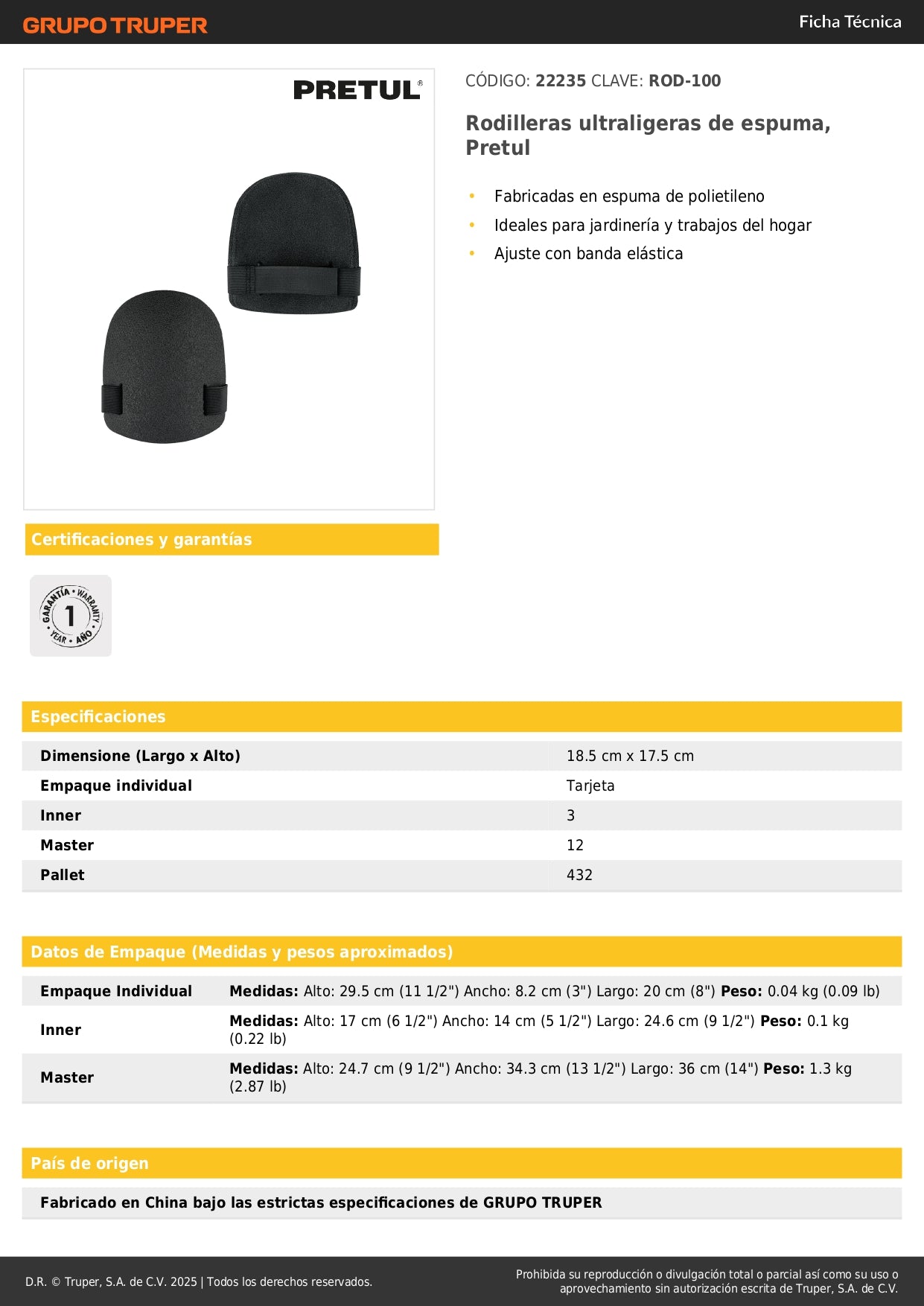 Rodilleras Ultraligeras Pretul ROD-100 - Máxima Comodidad y Protección