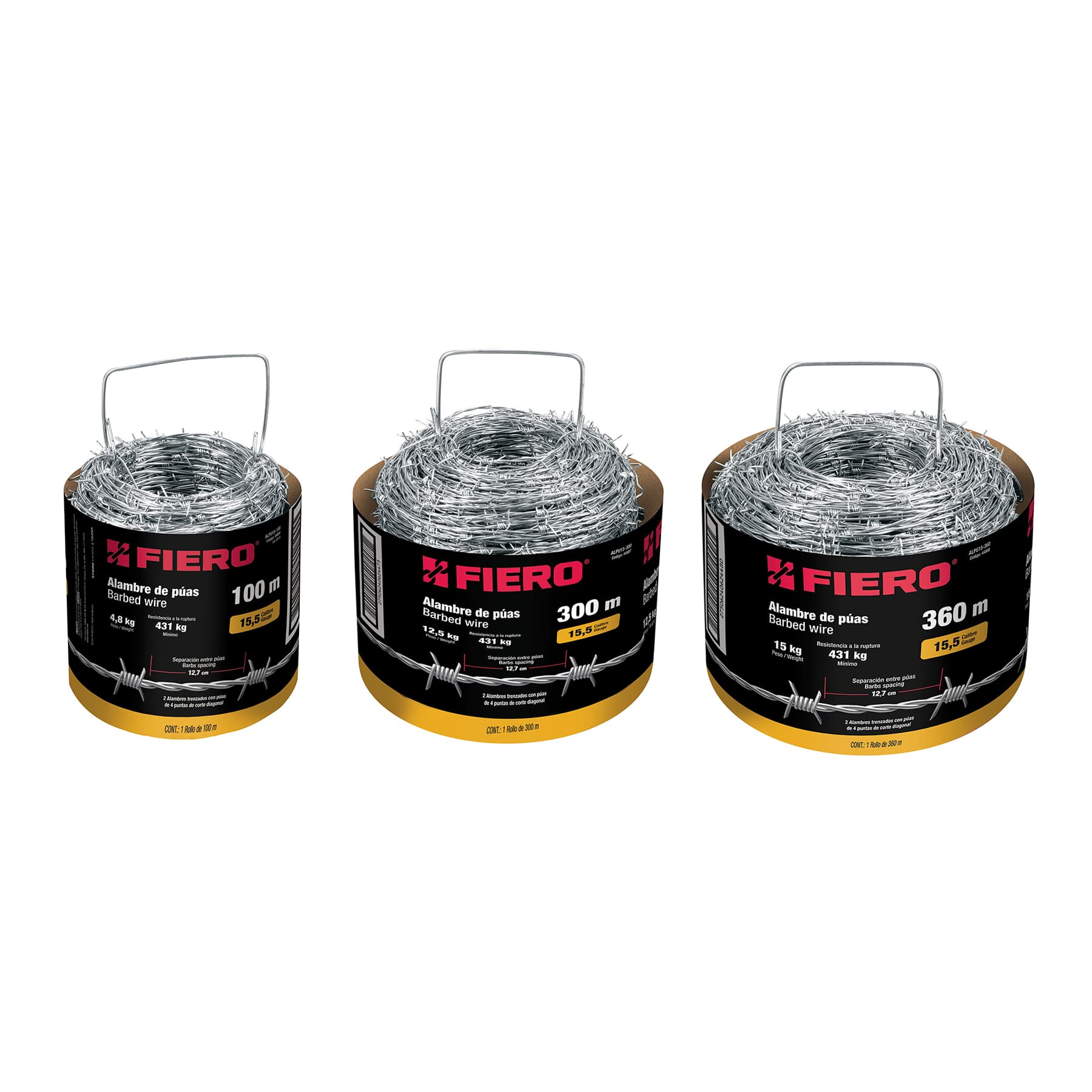 Sabemos que cada proyecto tiene necesidades distintas. Por ello, le ofrecemos la flexibilidad de elegir la medida adecuada para su proyecto. Nuestros rollos de alambre de púas calibre 15.5 están disponibles en presentaciones de 100 metros, 300 metros y 360 metros.