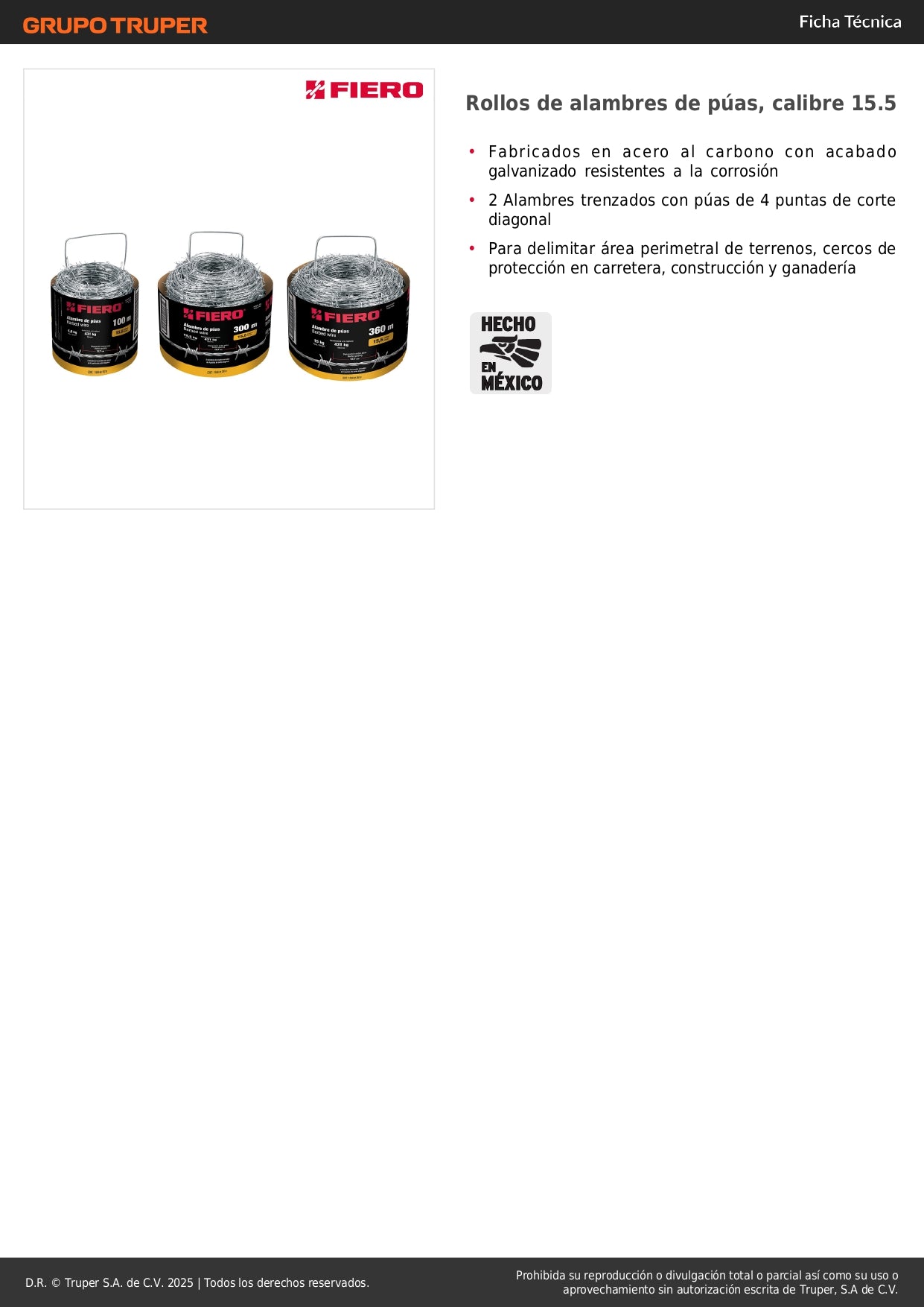 Asegure su propiedad con nuestro Alambre de Púas Calibre 15.5, la solución ideal para una protección perimetral robusta y duradera. Fabricado con acero al carbono de alta calidad y un acabado galvanizado resistente a la corrosión, este alambre de púas garantiza una larga vida útil frente a las inclemencias del tiempo, minimizando la necesidad de reemplazos constantes.