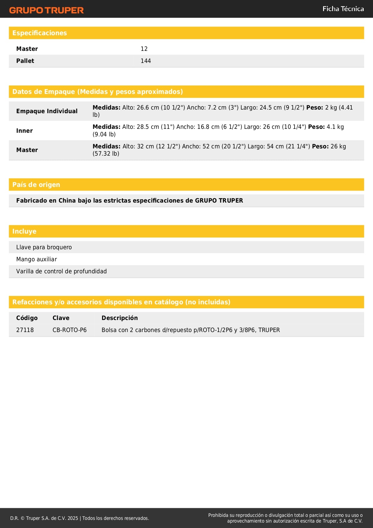 Marca TRUPER® - Líder en herramientas profesionales con más de 60 años de experiencia. Adquiere tu rotomartillo PRETUL y lleva tus proyectos al siguiente nivel.