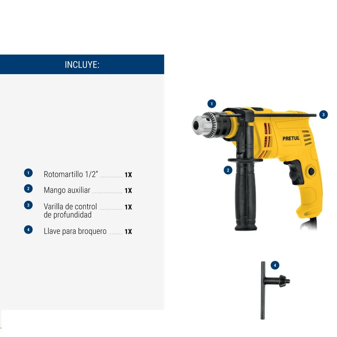 Rotomartillo PRETUL 1/2 Pulgada 550W - Potencia Profesional para Tus Proyectos