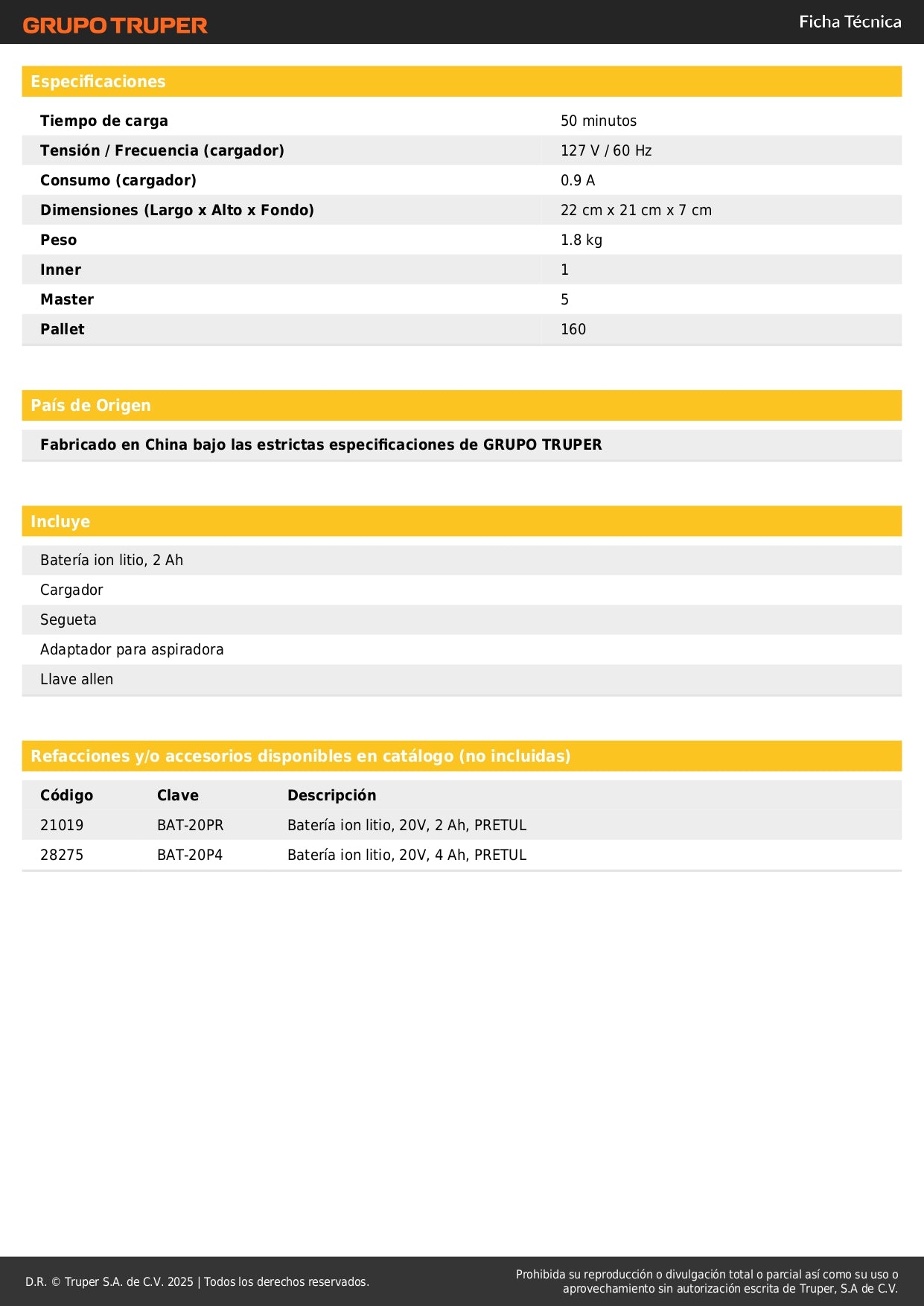 - Batería de Litio 2Ah incluida - Mayor autonomía y tiempo de trabajo continuo