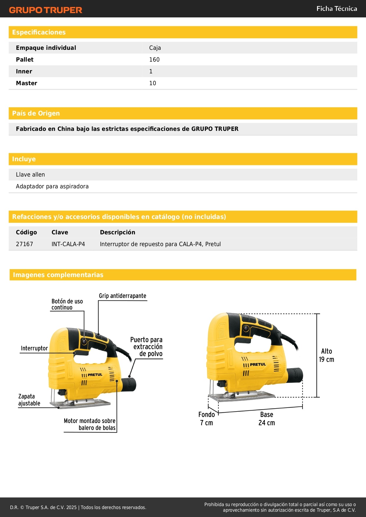 La Sierra Caladora PRETUL CALA-P4 es la herramienta eléctrica ideal para carpinteros, profesionales de la construcción y entusiastas del bricolaje. Con su motor de 400W, esta sierra caladora ofrece un rendimiento excepcional para cortes rectos y curvos en múltiples materiales.