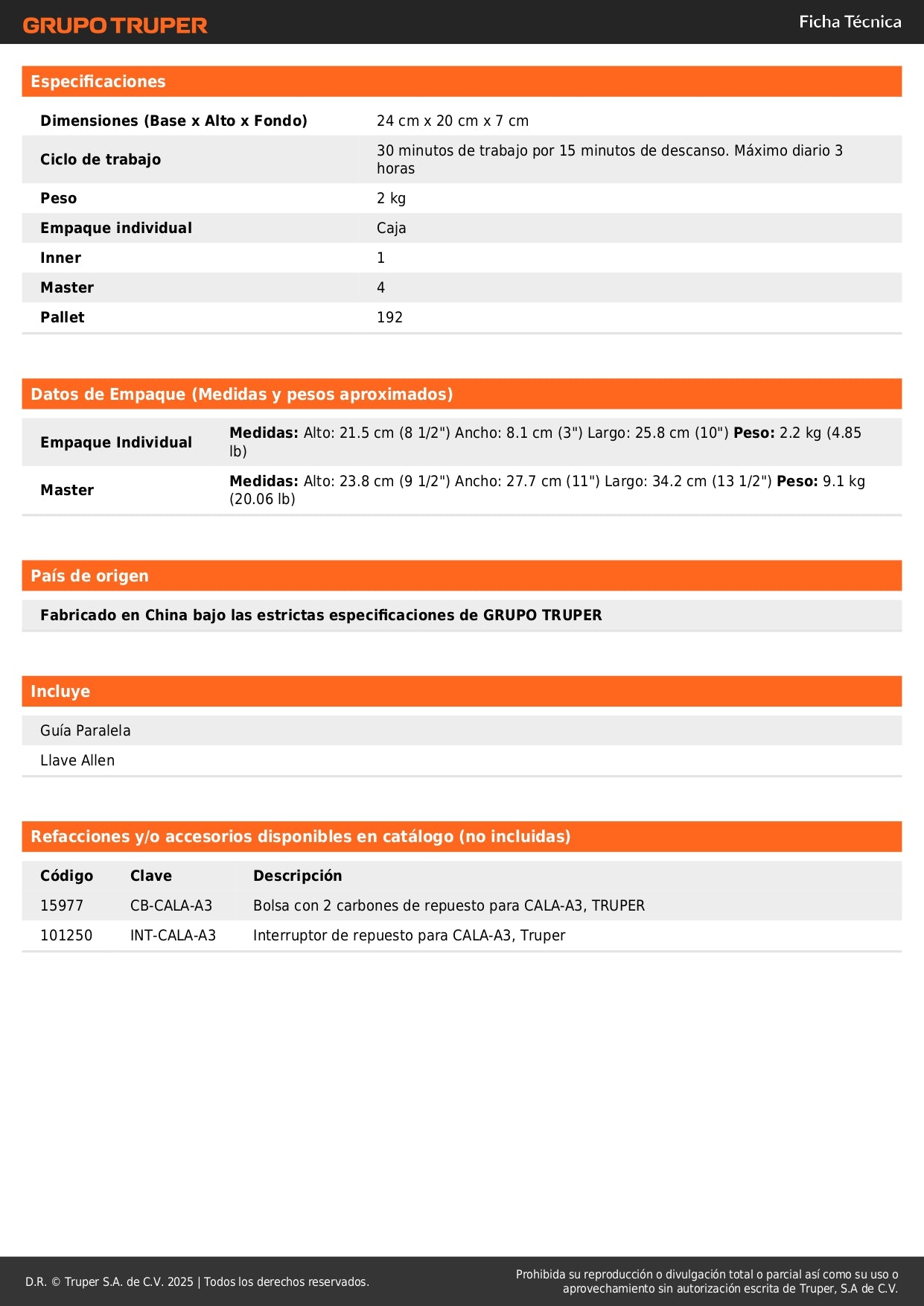 Sierra caladora eléctrica de alto rendimiento diseñada para trabajos profesionales y exigentes. Con motor de 550W y velocidad variable, esta herramienta TRUPER PRO modelo CALA-A3 te permite realizar cortes precisos en madera, metal, plástico y otros materiales.