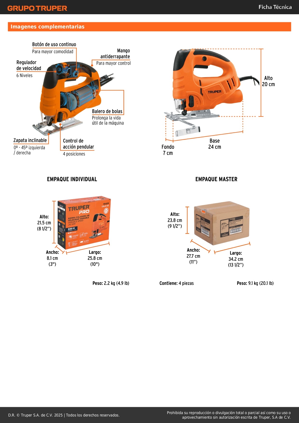 Sierra Caladora Profesional TRUPER PRO 550W - Precisión y Potencia para Cortes Profesionales