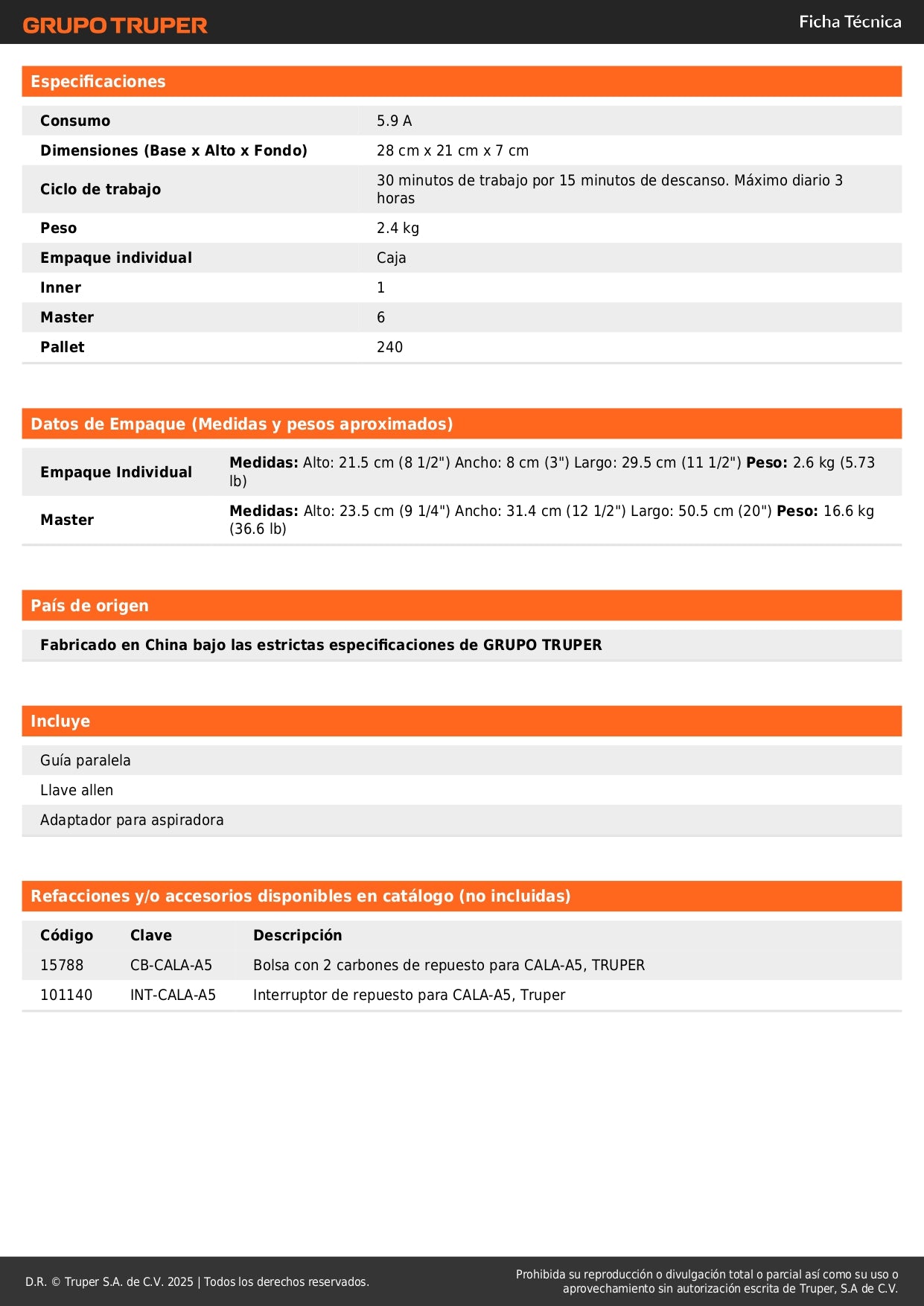 Marca de confianza TRUPER® - Calidad profesional respaldada por años de experiencia en herramientas eléctricas.
