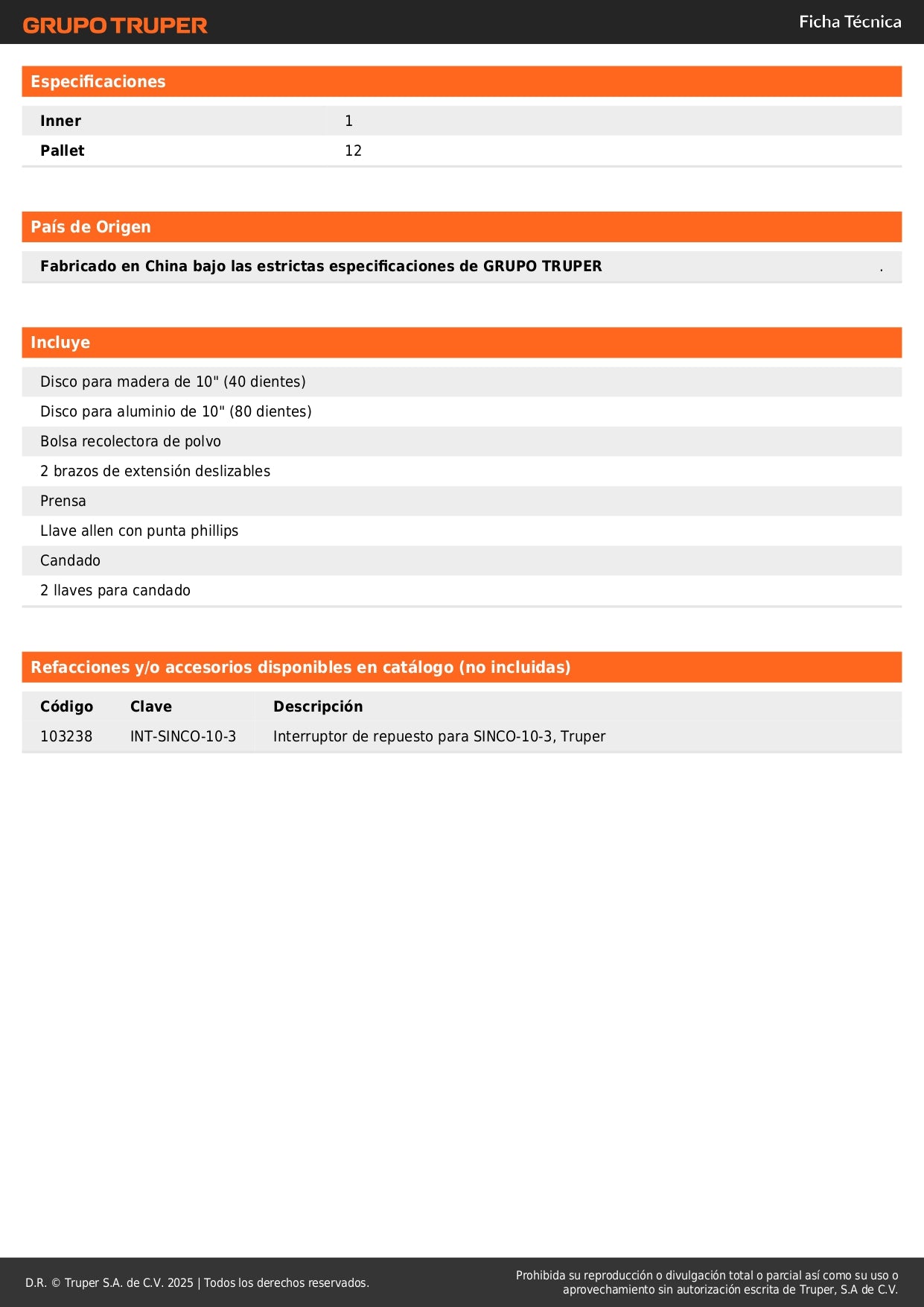 Sierra de Inglete Compuesta 10" TRUPER SINCO-10-3 - Potencia y Precisión Profesional