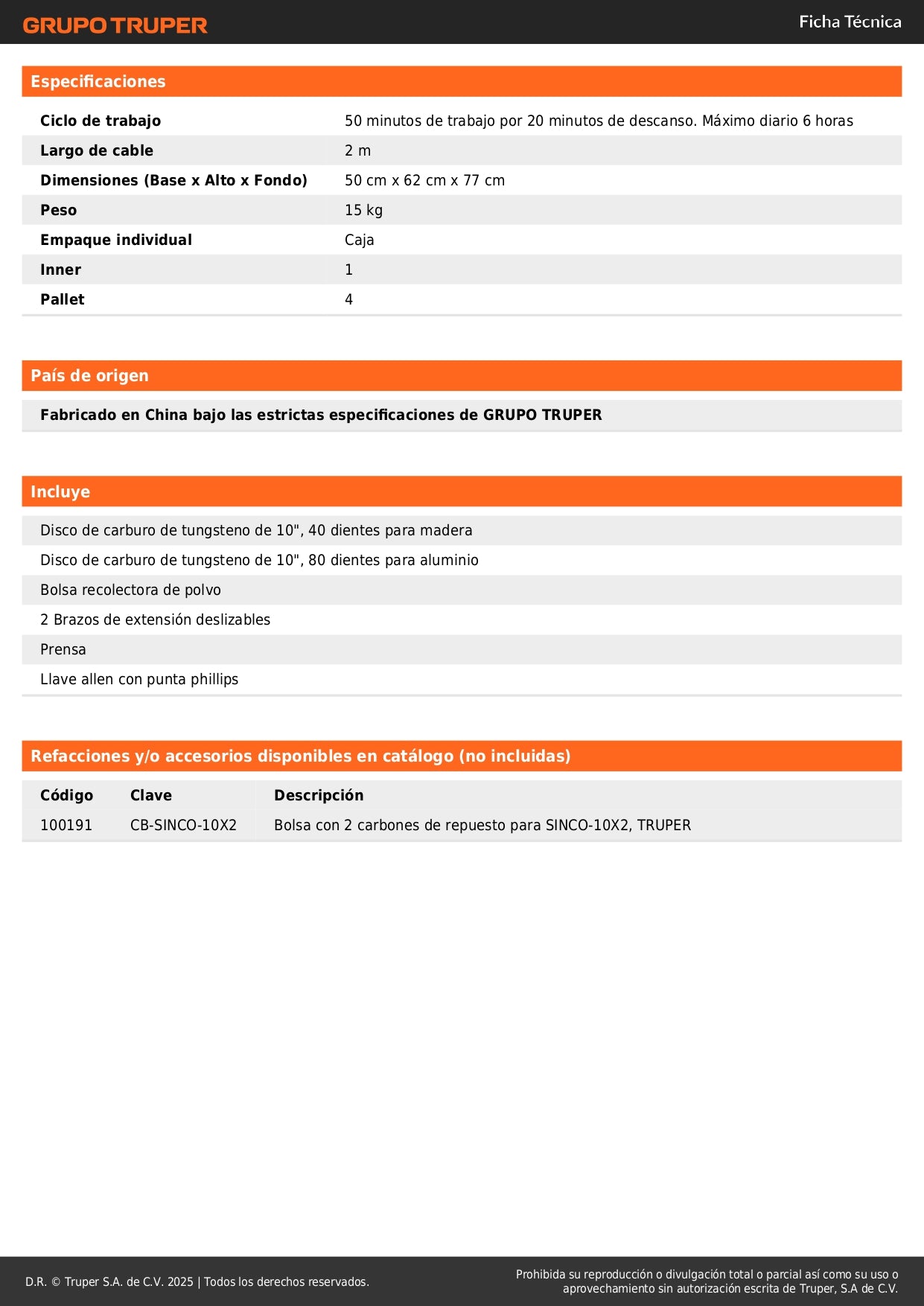 Sierra de Inglete Telescópica 10" TRUPER SINCO-10X2 - Potencia y Precisión Profesional