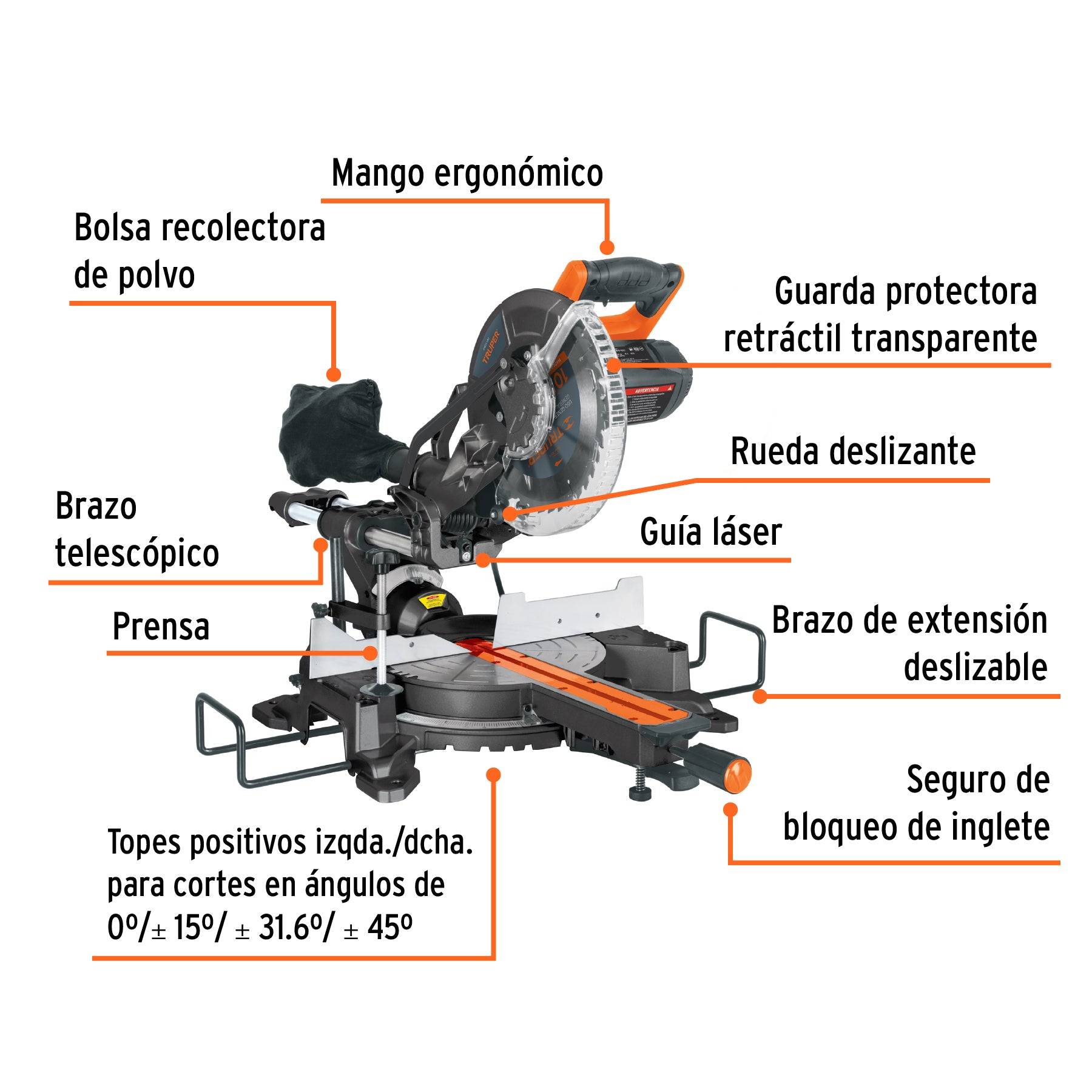 - ✓ Disco de 10 pulgadas (254mm) para mayor capacidad de corte