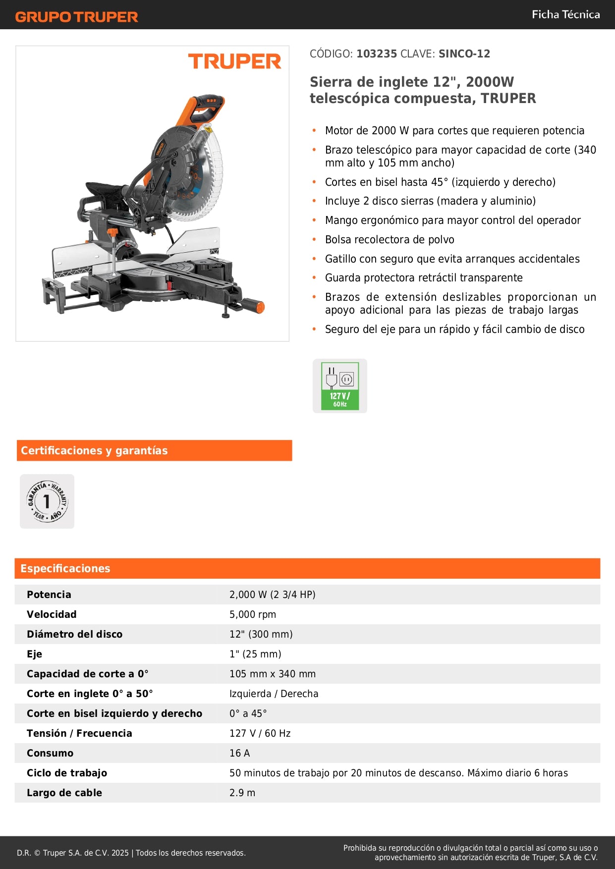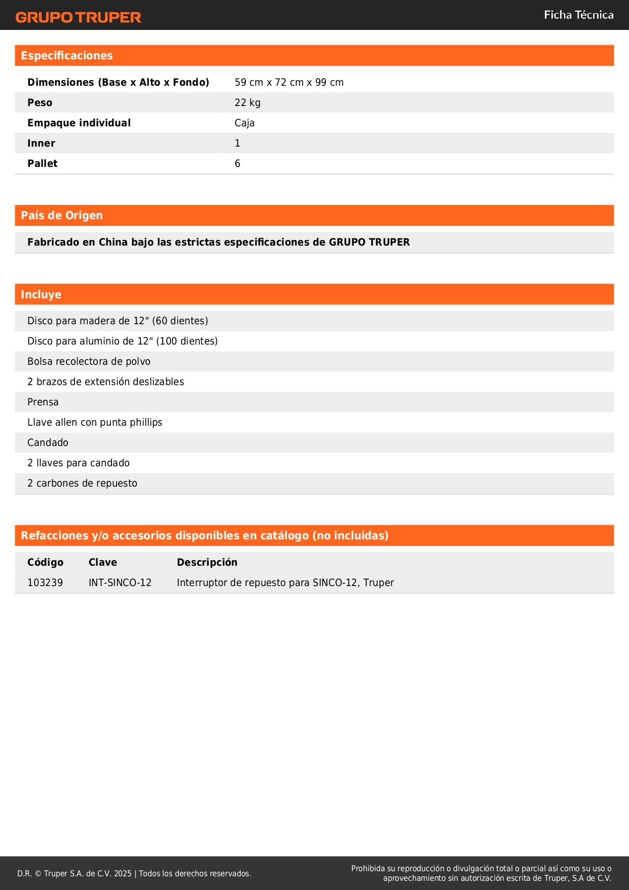 SKU: 103235 | Marca: TRUPER® | Modelo: SINCO-12