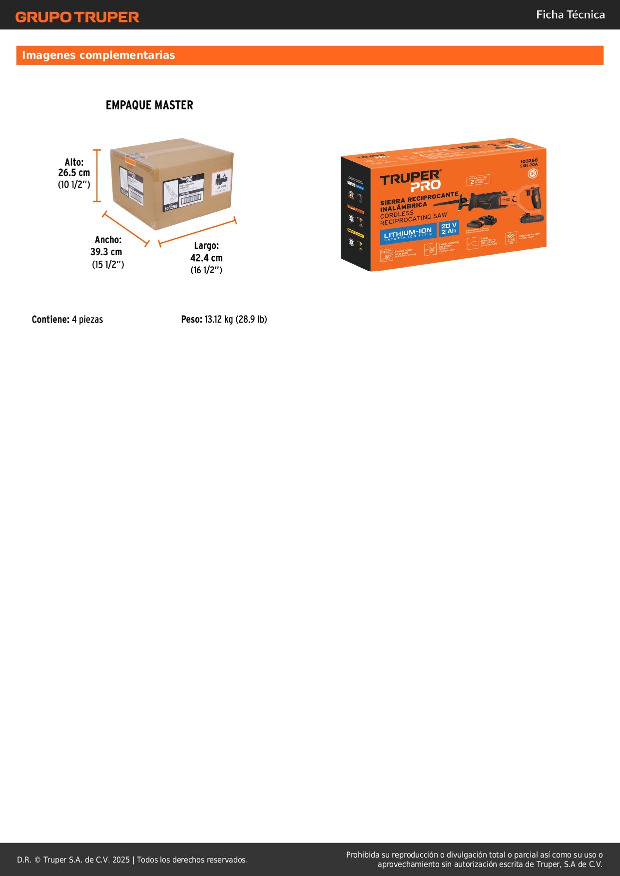 Sierra Sable Inalámbrica 20V TRUPER PRO - Potencia y Versatilidad Profesional