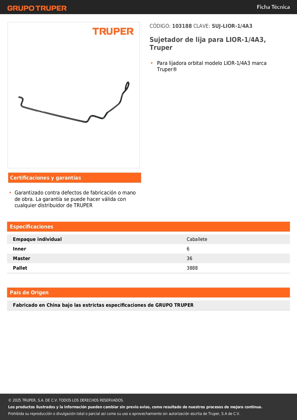 - Refacción original TRUPER: Calidad y ajuste garantizados