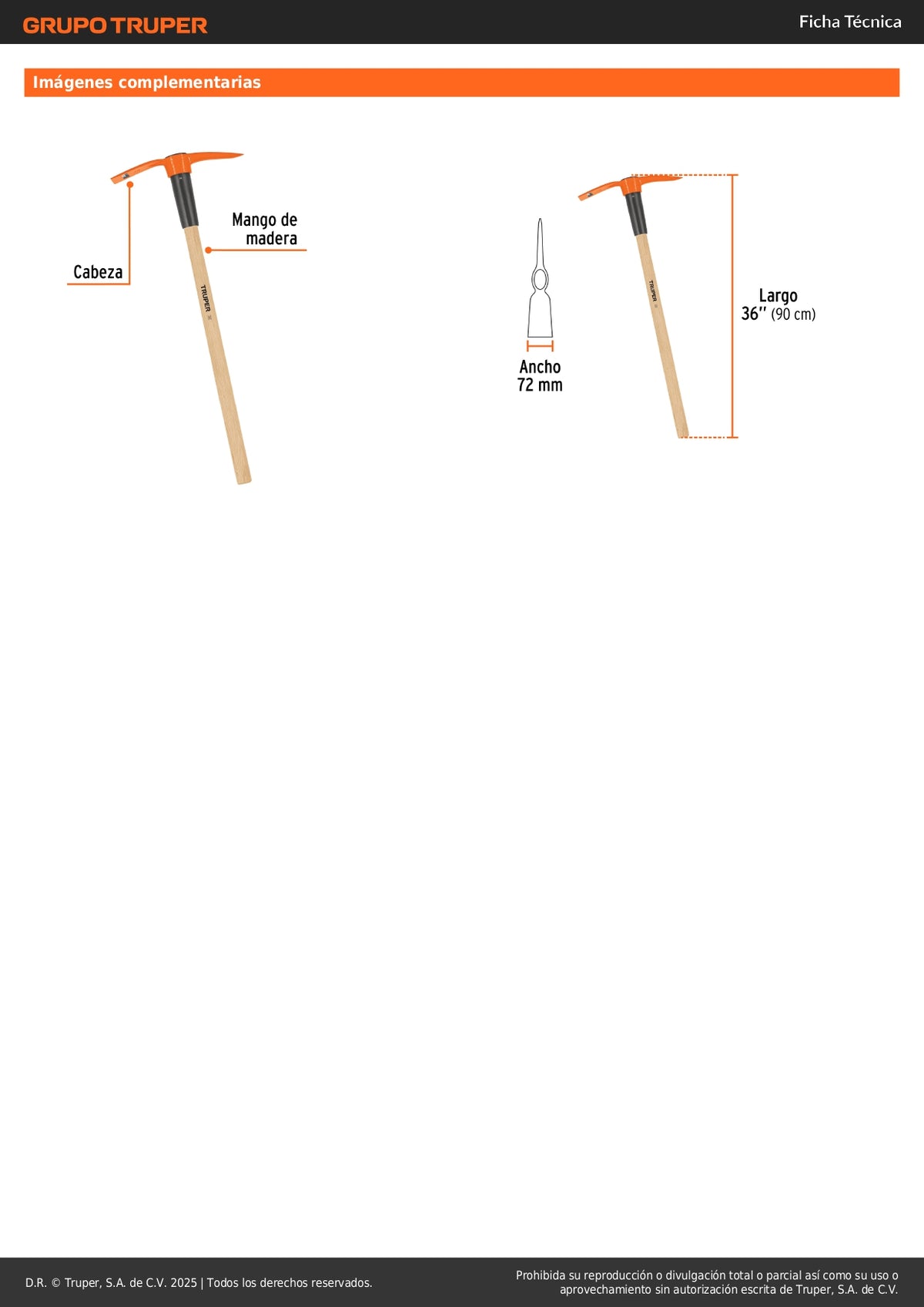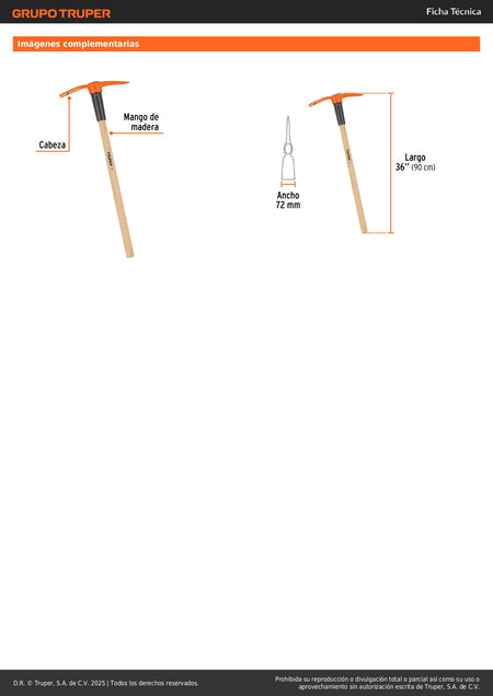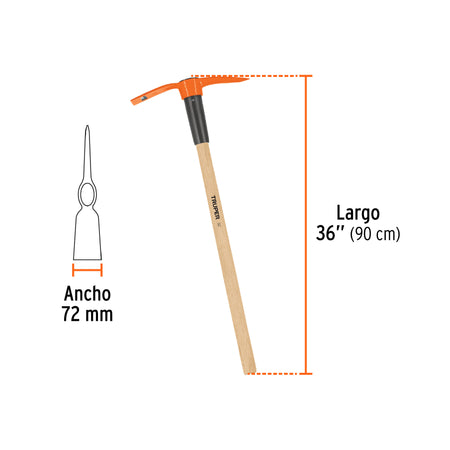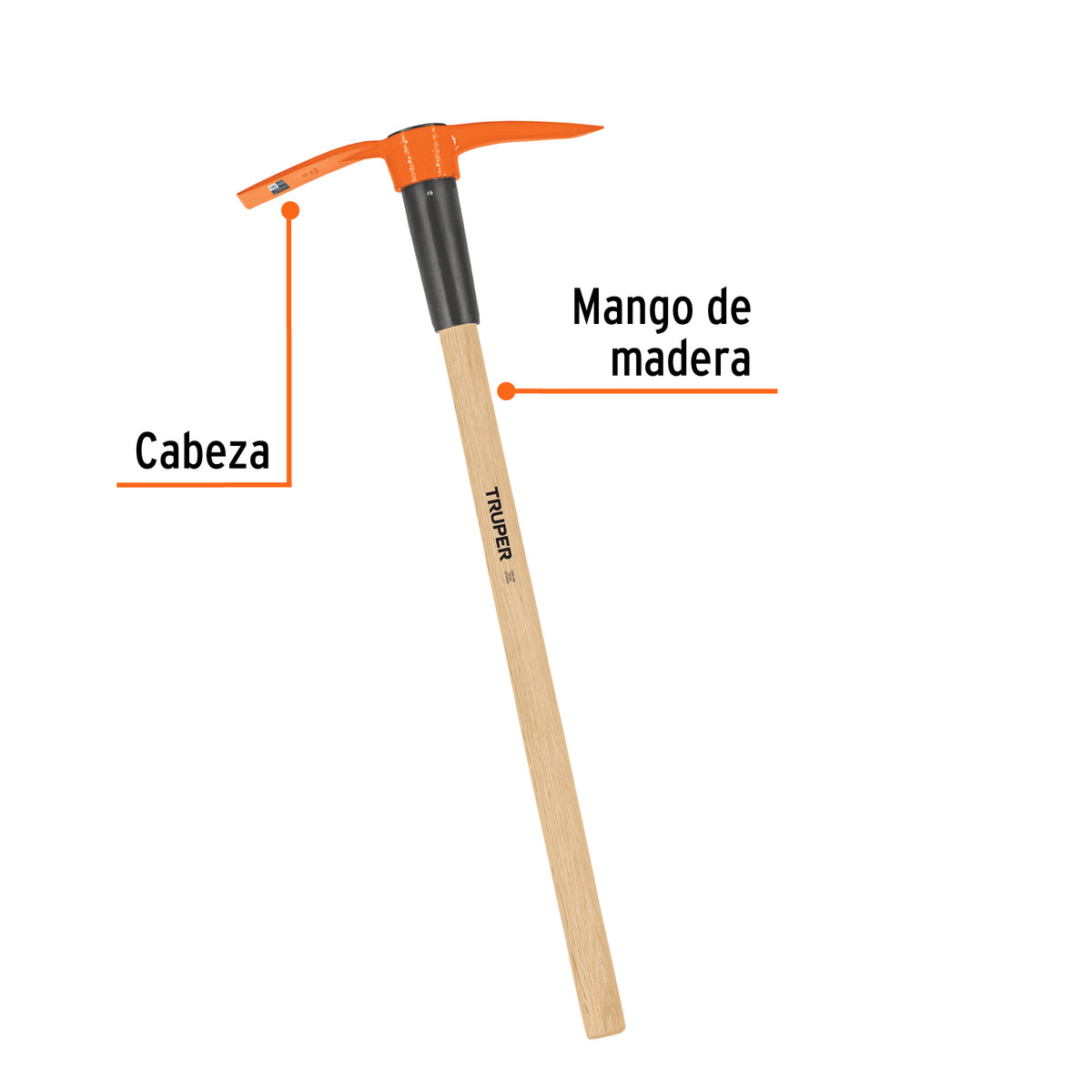 Talacho Pico 2.5 lb Truper TP-2.5MM - Herramienta Profesional para Excavación en Suelo Duro y Superficies Rocosas - Mango Madera 36" - Ideal Construcción y Jardinería