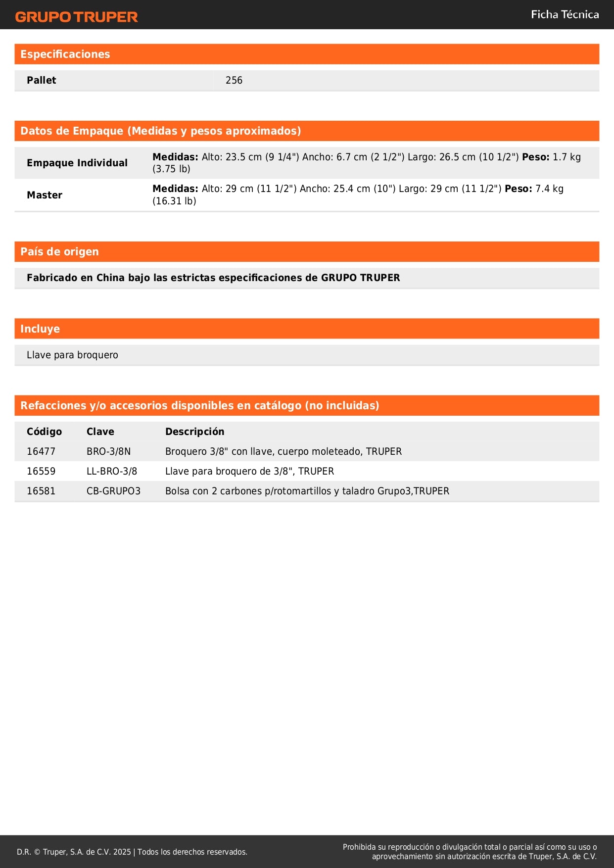 Marca de confianza: TRUPER INDUSTRIAL es sinónimo de calidad y resistencia en herramientas eléctricas profesionales. Respaldado por años de experiencia en el mercado mexicano.