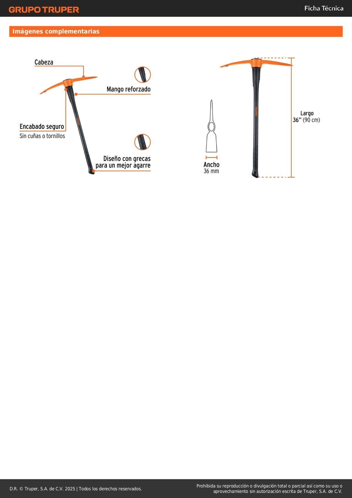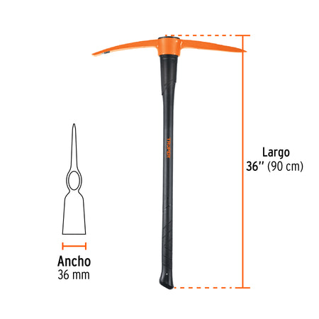 Zapapico Truper 6 lb Mango Fibra Vidrio 36" - Herramienta Profesional para Desenterrar Raíces y Romper Tierra Dura - ZP-6M