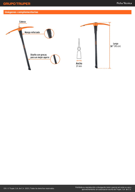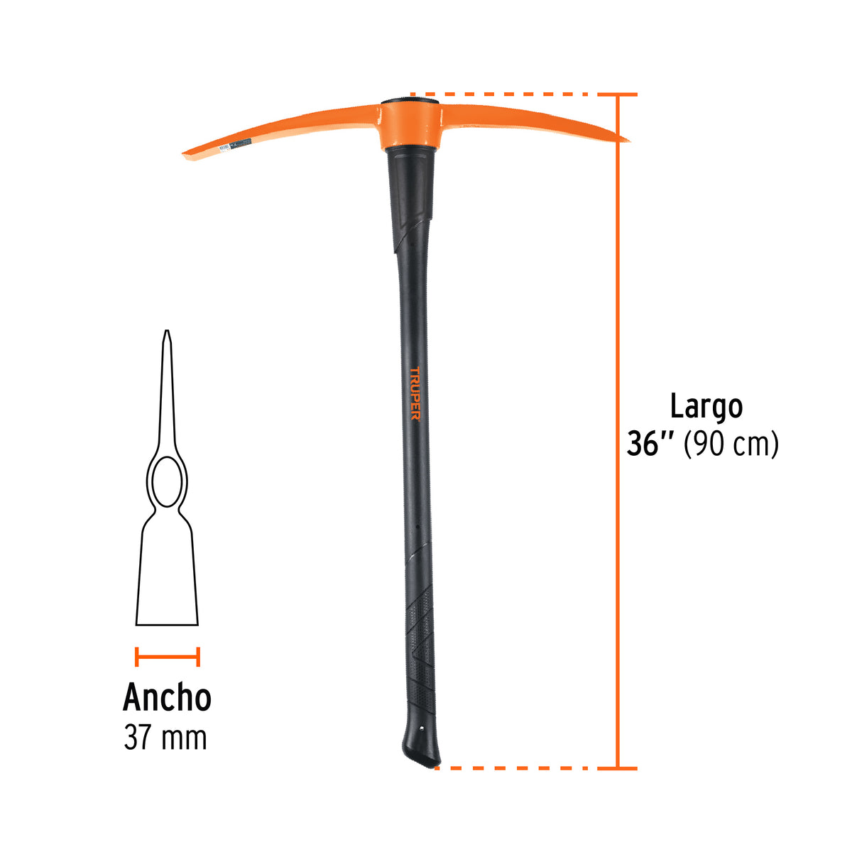 Zapapico Truper 7 lb Mango Fibra Vidrio 36" - Herramienta Profesional para Desenterrar Raíces y Romper Tierra Dura ZP-7M